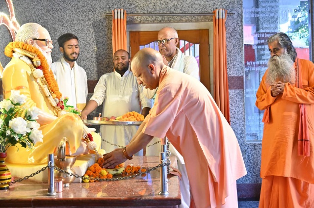 गोरखनाथ मंदिर पहुंचे मुख्यमंत्री योगी, बाबा गोरखनाथ व गुरु अवैद्यनाथ के चरणों में चढ़ाए पुष्प