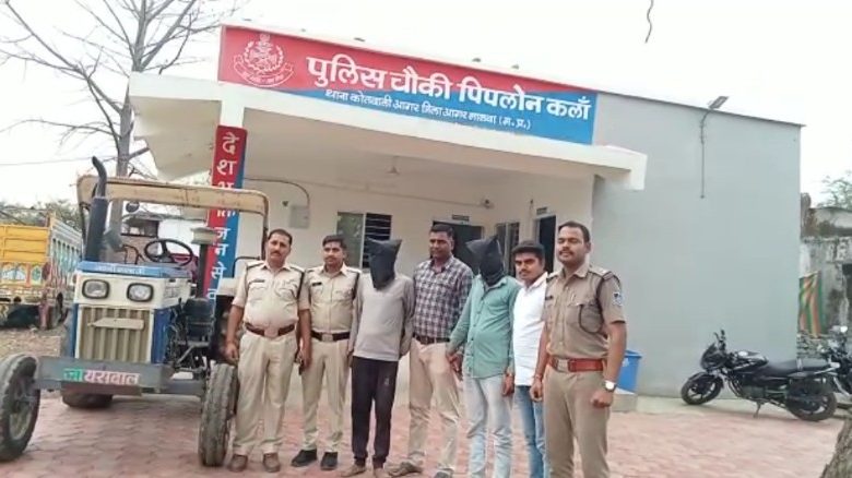 पुलिस को मिली सफलता चोरी हुआ टैक्टर सहित आरोपियों को किया 24 घंटे मे गिरफ्तार मामला है पुलिस चौकी पिपलोनकलां का फरयादी राजेश पिता रतनलाल निवासी निपानिया हनुमान द्वारा रिपोर्ट की गई थी और जिसमें बताया था कि 28 अप्रैल की रात मे अज्ञात बदमाशों द्वारा घर के बाहर खड़ा स्वराज टैक्टर क्रमांक एमपी ए -1045 चोरी कर लिया गया है फरयादी की रिपोर्ट पर थाना कोतवाली आगर पर 266/ 23 धारा 379 का पंजीबद्ध कर विवेचना मे लिया गया उसके बाद मामले को बड़ी गंभीरता से लेकर एक टीम का गठन करते हुए पुलिस महानिरीक्षक श्री संतोष कुमार सिंह उज्जैन झोन एवं पुलिस उप महानिरीक्षक श्री अनिल सिंह कुशवाह उज्जैन रेंज के मार्गदर्शन मे पुलिस अधीक्षक श्री संतोष कोरी एवं अतिरिक्त पुलिस अधीक्षक आगर श्री नवल सिंह सिसोदिया के निर्देशन मे एसडीओपी श्रीमती मोनिका सिंह आगर एवंस थाना प्रभारी कोतवाली जेजुकर के नेतृत्व मे जांच दल का गठन किया गया गठित टीम द्वारा तत्काल दबिश देकर संदेही प्रधान सिंह एवं मेहरवान सिंह निवासी निपानिया हनुमान से सख्ती से पुछताछ की गई तो इनके द्वारा जुर्म करना स्वीकार किया दोनो को गिरफ्तार कर इनके कब्जे से चोरी गया स्वराज टैक्टर जप्त किया गया प्रकरण मे गिरफ्तारी शुदा आरोपी प्रधान सिंह आपराधीक प्रवृत्ति का है जिसके विरूद्ध थाना कोतवाली आगर मे प्रकरण पंजीबद्ध है आरोपी- प्रधान सिंह पिता नारायण सिंह सौंधिया निवासी निपानिया हनुमान एवं मेहरवान सिंह पिता गोपाल सिंह सौंधिया से जब्त मश्रुका स्वराज टैक्टर जिसकी किमत 6 लाख रूपये को इनके कब्जे से जप्त किया गया है