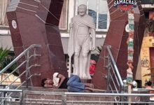 Bihar ; गांधी प्रतिमा के चरणों में सोता मजदूर बना चर्चा