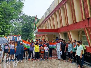 कार्यक्रम आयोजन के क्रम में क्रासकण्ट्री दौड़ प्रतियोगिता से पूर्व पूर्वान्ह् में प्रत्येक नागरिक के मन में राष्ट्र प्रेम की भावना जागृत हो तथा स्वतंत्रता के प्रतीकों के प्रति सम्मान का भाव उजागर होने के उद्देश्य के दृष्टिगत स्पोर्ट्स स्टेडियम में ’’हर घर तिरंगा’’ जागरूकता रैली का आयोजन किया गया, जिसमें प्रशिक्षक/खिलाड़ियों, शौकिया खिलाड़ीगण व जनसामान्य की अधिकाधिक संख्या में प्रतिभागिता रही।