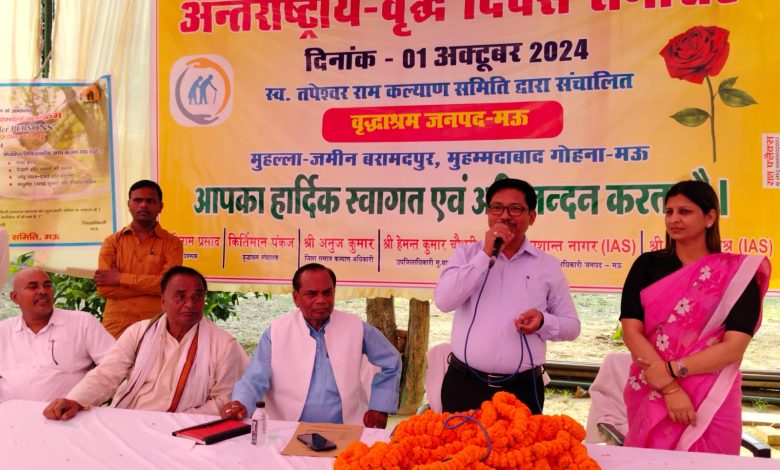 अंतर्राष्ट्रीय वृद्ध दिवस समारोह के अवसर पर कस्बे के जमीन बरामदपुर मोहल्ले में स्वर्गीय तपेश्वर राम कल्याण समिति द्वारा संचालित वृद्धाश्रम में अंतर्राष्ट्रीय वृद्धि दिवस पर वृद्ध जनों को फल अंग वस्त्र एवं माला पहनकर उनको सम्मानित किया गया। कार्यक्रम के मुख्य अतिथि उपजिलाधिकारी हेमंत कुमार चौधरी ने वृद्धाश्रम में जीवन व्यतीत कर रहे कुल 119 महिला 33 एवं पुरुष 86 बुजुर्गों को संबोधित करते हुए कहां की आप माता एवं पिता तुल्य बुजुर्गों को सादर प्रणाम करते हुए बताया कि आप अपने बच्चों या इस उम्र में आपको परिवार भत्ता या आपकी कोई भी समस्या हो तो आश्रम के प्रबंधक के द्वारा एसडीएम कोर्ट में एक छोटा सा प्रार्थना पत्र दे। जिस पर आपकी समस्या का समाधान पूरी तरह से किया जाएगा। इस अंतर्राष्ट्रीय वृद्ध दिवस के अवसर पर राइजिंग सन् स्कूल चिश्तीपट्टी के बच्चों द्वारा बुजुर्गों के पूरे जीवन कार्यशैली पर एक कार्यक्रम प्रस्तुत किया गया। जिसमें बच्चों द्वारा यह दिखाया गया की यदि एक बेटा अपने ही बुजुर्ग पिता को वृद्धाश्रम में भेजता है। वही उपस्थित बुजुर्ग पिता के बेटे का बेटा पूरी कहानी देख रहा था और मौका पाकर यह कहता है कि पापा जब मैं बड़ा हो जाऊंगा तो आपको भी वृद्धाश्रम में इसी तरह से भेज दूंगा। जिस तरह से आप मेरे बाबा को भेज रहे हैं। यह सुनकर पिता के आंखों में आंसू की धारा बहने लगती है। और अपने बुजुर्ग पिता का पैर पड़कर रोने लगता है। यह कार्यक्रम देखकर उपस्थित वृद्धजन भी रो पड़े। कार्यक्रम के अंत में उपजिलाधिकारी हेमंत कुमार चौधरी ने अपने हाथों से बुजुर्गों को अंग वस्त्र आदि देखकर सम्मानित करते हुए उनका आशीर्वाद प्राप्त किया। वृद्धाश्रम के प्रबंधक लछिराम प्रसाद द्वारा एसडीएम को आश्रम के बगल में वृद्धाश्रम के पानी की निकासी के लिए नाले के निर्माण की समस्या से अवगत कराया। इस मौके पर कांग्रेस की वरिष्ठ नेता पूजा राय, समाज कल्याण अधिकारी अनुज कुमार,संचालक कीर्तिमान पंकज, राजीव कुमार राजु, प्रदीप कुमार,वीरेंद्र तिवारी,हरिनाथ प्रसाद, डॉ सत्यदेव भारती,चंद्रावती देवी,पवन सिंह,बसन्त आदि लोगों उपस्थित रहे।