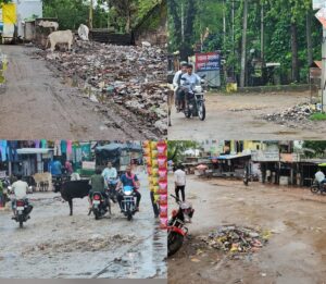 बीच बाजार से गुजरती सड़क के किनारे सब्जी विक्रेताओं और दुकानदारों द्वारा रोजाना फेंका जा रहा कूड़ा अब नालियों को पूरी तरह जाम कर चुका है। बरसात के चलते यह कचरा सड़कों पर बहने के बजाय वहीं सड़ रहा है, जिससे बदबू और बीमारियों का खतरा लगातार बढ़ता जा रहा है।