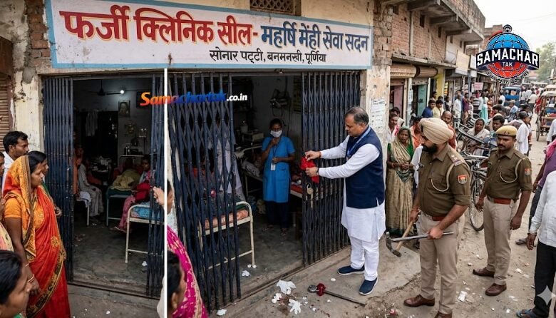 पूर्णिया जिले के बनमनखी अनुमंडल में प्रशासन ने फर्जी क्लीनिक के खिलाफ बड़ी कार्रवाई की है। छापेमारी के दौरान अवैध रूप से संचालित एक क्लीनिक को सील कर दिया गया, जिससे क्षेत्र में हड़कंप मच गया।