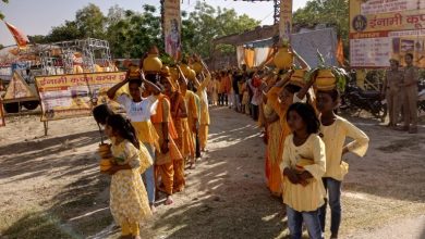 श्री लक्ष्मी नारायण पंचकोशी महायज्ञ के दौरान नगर में निकाली भव्य कलश यात्रा ।