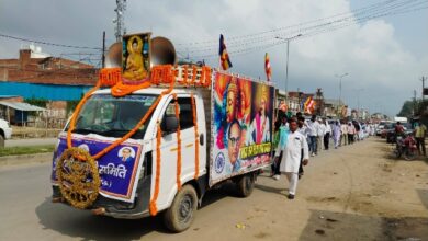 मऊ में बुद्ध विहार से निकली सम्राट अशोक मौर्य की शोभायात्रा