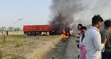 बालू लदा ट्रक खाई में पलटा लगी भीषण आग आप – पास मची अफरातफरी,