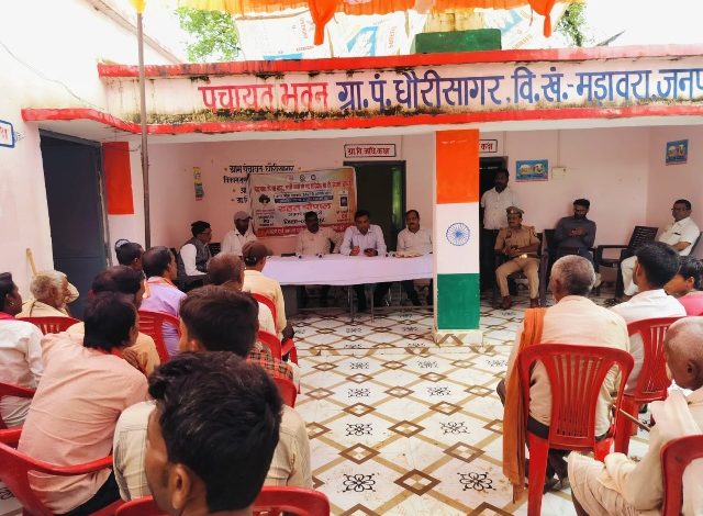 मुख्यमंत्री योगी आदित्यनाथ के निर्देश पर तेज बारिश, बाढ़ से राहत बचाव के लिए एडीएम अंकुर श्रीवास्तव एवं उपजिलाधिकारी मड़ावरा भूपेन्द्र यादव ने शनिवार को जनपद की मड़ावरा तहसील क्षेत्र के ग्राम धौरीसागर में राहत चौपाल का आयोजन किया। उन्होंने लोगों को बाढ़ और अत्यधिक बारिश से बचने को लेकर जागरूक किया। बताया कि वह अपने पशुओं की बाढ़ और तेज बारिश में कैसे देखभाल करें। सांप बिच्छू और जहरीले कीटों से खुद को और बच्चों को कैसे बचाएं। इसके बारे में उन्हें टिप्स दिए गए। रेस्क्यू टीम के बारे में जानकारी दी गई। वह अपने जानवरों को किस तरह ऊंचे स्थान पर बांधकर उनकी सुरक्षा करें।