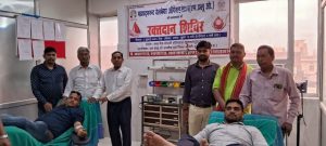 रक्तदान महादान है इस मुहिम को आगे बढाने के लिए महापदमननद वेलफेयर आर्गेनाइजेशन (एमडब्ल्यूओ ) की जिला कमेटी के तत्वावधान में ब्लड बैंक गोमती हास्पिटल में रक्तदान शिविर का आयोजन किया गया । कार्यक्रम का शुभारंभ सभासद अनिल कुमार (राजू पीको ) ,शिवदयाल शर्मा (प्रांतीय महासचिव) अजीत शर्मा (जिला उपाध्यक्ष ) ने संयुक्त रूप से फीता काटकर किया । एमडब्ल्यूओ के प्रांतीय उपाध्यक्ष घनश्याम शर्मा ने रक्तदाताओं को प्रेरित करते हुए कहा कि इंसान के रक्तदान करने से शरीर में नई स्फूर्ति व जोश आ जाता है ! जिसके साथ अपनी दिनचर्या प्रारंभ करने में अलग ही आनंद आता है । दीपक शर्मा (ब्लाक अध्यक्ष प्रतापपुर कमैचा ) ने भी रक्तदाताओं को प्रेरित करते हुए कहा कि रक्तदान महादान है तथा रक्तदाता जीवन दाता होता है । शिविर के माध्यम से रक्तदान करने वालों में प्रमुख रूप से दुर्गेश कुमार शर्मा, राहुल पाल, सुनील यादव, दिनेश चन्द्र मौर्या, दीपक शर्मा, संदीप कुमार, राम अनुज यादव, ध्यानचंद, ओमप्रकाश मौर्या, जीतलाल, ललित शर्मा, दिलीप शर्मा, सुनील शर्मा, प्रमोद कुमार शर्मा, पवन कुमार शर्मा, संजय शर्मा, ब्रह्माजीत शर्मा, कुलदीप शर्मा, योगेन्द्र त्रिपाठी, सुनील कुमार यादव इत्यादि लोग उपस्थित रहे । कार्यक्रम को सफल बनाने में संगठन के रंजीत कुमार शर्मा (वरिष्ठ उपाध्यक्ष ), रवीन्द्र कुमार शर्मा (कोषाध्यक्ष ), दलबहादुर शर्मा (ब्लाक अध्यक्ष बल्दीराय ), मातादीन शर्मा (तहसील अध्यक्ष लमभुआ ), श्रीकान्त शर्मा (जिलाउपाधयक्ष अमेठी ), बद्री प्रसाद शर्मा (तहसील संरक्षक जयसिंहपुर ) के अलावा कई गणमान्य लोग उपस्थित रहे ।