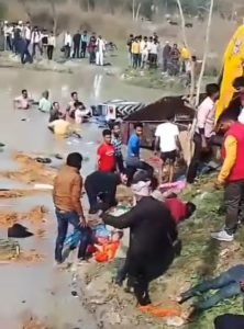 गंगा स्नान करने जा रहा श्रद्धालुओं से भरा ट्रक्टर ट्रॉली तलाव में गिरा महिलायें बच्चे समेत 23 की मौत दर्जनों घायल,