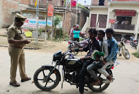 हेलमेट न लगाने पर पुलिस ने चलाया वाहन चेकिंग अभियान, 19 दोपहिया वाहनों का हुआ ई-चालान