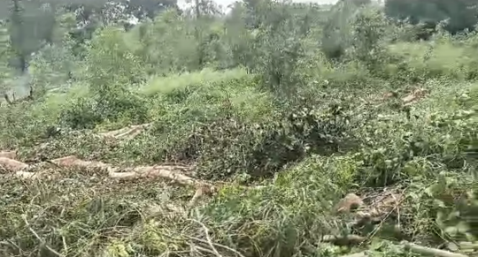 मदनपुर वन विभाग गेस्ट हाउस के सामने से काटे गए हरे पेड़,