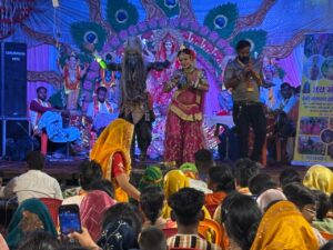 देवी जागरण में चंदौली व मुगलसराय जनपद से आए कलाकारों ने एक से बढ़कर एक भक्ति गीतों की प्रस्तुति दी। “घर में पधारो गजानंद जी मेरे घर में पधारो” जैसे मधुर भजनों ने उपस्थित श्रद्धालुओं को मंत्रमुग्ध कर दिया। कलाकारों द्वारा गणपति गजानन, भगवान शंकर, माता पार्वती एवं राधा-कृष्ण की झांकी प्रस्तुत की गई, जिसे देख श्रद्धालु भाव-विभोर हो उठे।
