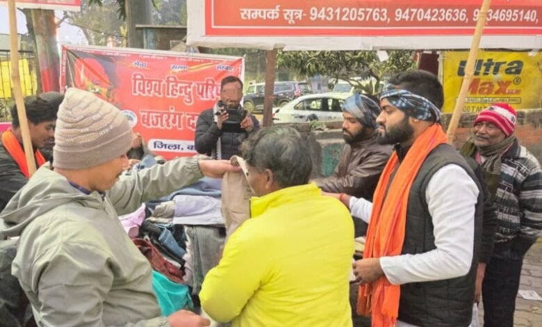 कड़ाके की ठंड के बीच जरूरतमंदों के लिए राहत बनकर सामने आए विश्व हिंदू परिषद और बजरंग दल के कार्यकर्ताओं ने शहीद चौक पर सेवा कार्यक्रम का आयोजन कर गर्म कपड़ों का वितरण किया। सेवा को ही धर्म मानते हुए आयोजित इस कार्यक्रम में समाज के आर्थिक रूप से कमजोर वर्ग के लोगों को ठंड से बचाव के लिए स्वेटर, जैकेट और कंबल प्रदान किए गए।