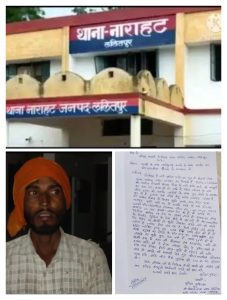 थाना क्षेत्र के ग्राम पड़रिया निवासी ब्रजेश अहिरवार पुत्र बिहारी लाल ने प्रभारी निरीक्षक नाराहट को एक शिकायती पत्र देकर बताया कि वह अपने गॉव के ही निवासी शिवम के यहां पर मजदूरी कार्य करता हूँ बुधवार को भी में काम पर ही था तभी शिवम पटेल के पास उनके एक रिश्तेदार का फोन आया कि उनके जीजा जी के साथ कुछ लोगो ने मारपीट कर दी है। शाम का समय होने के कारण शिवम की मोटरसाइकिल रजि. नम्बर UP94W9969 बजाज की सीटी 100 से थाना नाराहट के पास छोड़कर अपने घर वापिस जा रहा था तभी ग्राम ककरूवा के नजदीक बनी नहर की पुलिया के पास पीछे से दो मोटरसाइकिल से आये रहे चार लोगों ने रोककर जातिसूचक शब्दो के साथ गाली गलौज करते हुए मारपीट करते हुए कहने लगे मेरे द्वारा मारपीट करने के सम्बंध में पूछा गया तो कैलाश एवं उसके तीन अन्य साथी अभद्र भाषा व जातिसूचक शब्दो के साथ गाली गलौज करते हुए कहने लगे कि तू मेरे विरोधी रामगोपाल के साथ थाना नाराहट हम लोगो की रिपोर्ट कराने गया था,जब मैंने उसने कहा में तो सिर्फ शिवम पटेल को छोड़ने गया था मुझे आपकी लड़ाई से कोई मतलब नही है तो कहने लगे साले अगर तू ने मेरे विरोध में राजनीति की तो तुझे जान से मार दूंगा। इतना कहने के बाद मेरी मोटरसाइकिल छीन कर भाग गए जिसकी मैने तुरन्त आपातकालीन सेवा डायल 112 पर पर शिकायत की थी।