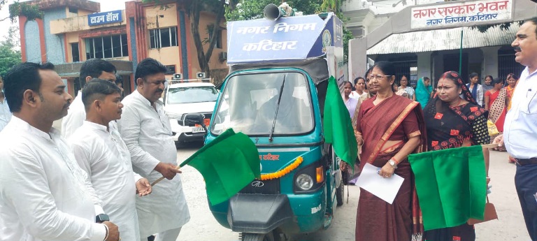 नगर निगम कटिहार में रविवार को “मुख्यमंत्री महिला स्वरोजगार कार्यक्रम” का शुभारंभ किया गया। महापौर उषा देवी अग्रवाल, उप महापौर मंजूर खान, नगर आयुक्त तथा निगम पार्षदों की मौजूदगी में इस योजना का प्रचार-प्रसार प्रारंभ हुआ। इस अवसर पर महापौर ने कार्यक्रम के प्रचार वाहन को हरी झंडी दिखाकर रवाना किया।