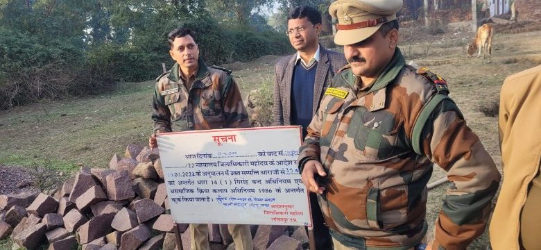 अपर पुलिस महानिदेशक कानपुर जोन कानपुर एवं पुलिस उप महानिरीक्षक झांसी, परिक्षेत्र झांसी के निर्देश के क्रम में पुलिस अधीक्षक ललितपुर मो0 मुश्ताक के निर्देशन में अपर पुलिस अधीक्षक अनिल कुमार, क्षेत्राधिकारी सदर अभय नारायण राय के पर्यवेक्षण में शासन द्वारा अपराधियों/भूमाफियाओं के विरूद्ध चलाये गये अभियान के अन्तर्गत जनपद के अपराधियों/भूमाफियाओं के विरुद्ध की जा रही कठोर कार्यवाही की जा रही है।इसी के क्रम में थाना कोतवाली के मु0अ0सं0 137/23 धारा 2/3 गैग्स्टर एक्ट बनाम सुरेन्द्र सिंह यादव उर्फ भैया यादव पुत्र महाराज सिंह यादव नि0 मुहल्ला घुसयाना थाना कोतवाली जनपद ललितपुर से सम्बन्धित अभियोग में मा0न्यायालय जिलाधिकारी वाद संख्या 1302/23 सरकार बनाम सुरेन्द्र सिंह यादव उपरोक्त कम्प्यूटरीकृत वाद संख्या D202306450001302 अन्तर्गत धारा -14(1) गिरोहबन्द एवं असामाजिक क्रियाकलाप (निवारण) अधिनियम,1986 आदेश दिनांकित 12.01.2024 के अनुपालन में गैंग लीडर सुरेन्द्र सिंह यादव के द्वारा समाजविरोधी क्रियाकलापों से कोतवाली थाना क्षेत्र में अर्जित की गई अवैध चल/अचल सम्पत्ति में से जिसकी कीमत कुल 48 लाख 68 हजार रूपये जिसका वर्तमान मूल्य कई गुना ज्यादा है को मौके पर राजस्व टीम की उपस्थिति में मुनादी कराकर, नियमानुसार कुर्क किया गया तथा कुर्की के सम्बन्ध मे बोर्ड लगवाये गये । कुर्क की गयी चल/अचल संपत्ति वाहन संख्या यूपी 93 ए टी 8185 वाहन स्वामी सुरेन्द्र सिंह यादव वाहन का प्रकार डम्फर वर्तमान मूल्य 14 लाख 50 हजार रूपये, वाहन संख्या यूपी 94 टी 6704 वाहन स्वामी सुरेन्द्र सिंह यादव वाहन का प्रकार HGV वर्तमान मूल्य 7 लाख 95 हजार रूपये कुल धनराशि- 22 लाख 45 हजार रूपये तथा गैंग लीडर सुरेन्द्र सिंह यादव की अचल सम्पत्ति कृषि भूमि बैनामा संख्या 9147/2016 दिनांक 24.10.2016 भूमि नं0 2189/01 रकवा 0.149 हेक्टेयर स्थित ग्राम सिलगन तहसील ललितपुर अनुमानित मूल्य 5 लाख 75 हजार रूपये,संक्रमणीय भूमिधरी अराजी संख्या 346मि0, 354मि0, 355मि,358मि, 361/2, 365मि कुल 6 किता रकवा 0.148 हेक्टेयर मे से 0.020 हेक्टेयर भूमि अभियुक्त द्वारा विक्रय कर दिये जाने के कारण शेष भूमि रकवा 0.128 स्थित ग्राम अन्दर हद ललितपुर अनुमानित मूल्य 20 लाख 48 हजार रूपये आँकी गयी है। कुर्क की गयी कुल सम्पत्ति का मूल्य- 22,45,000+ 26,23,000= 48,68,000 रू0 (अड़तालीस लाख अढसठ हजार रूपये मात्र) बताया गया है।इस कुर्की की कार्यवाही के दौरानअभय नारायण राय, क्षेत्राधिकारी सदर जनपद ललितपुर,.प्र0नि0 मनोज मिश्रा (विवेचक) थाना जखौरा, प्र0नि0 शशि भूषण थाना कोतवाली जनपद ललितपुर मय हमराह टीम, उ0नि0 दिग्विजय सिंह थाना जखौरा,उ0नि0 नरेन्द्र सिंह,कां0 विवेक राठौर थाना जखौरा तथा कुर्की कार्यवाही हेतु गठित राजस्व टीम में नायब तहसीलदार विनोद कुमार, रामदीन विश्वकर्मा (लेखपाल),राजेश 