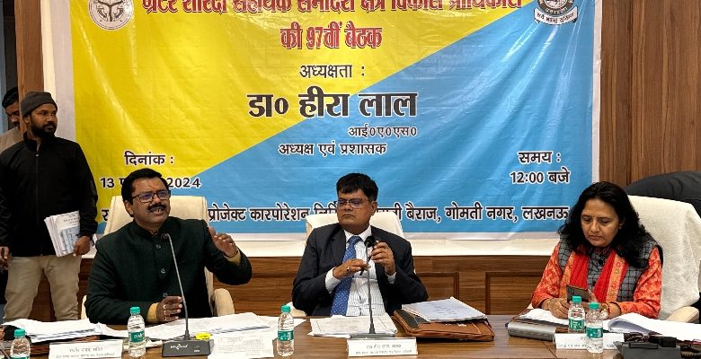 उत्तर प्रदेश प्रोजेक्ट कारपोरेशन लिमिटेड, प्रदेश की राजधानी मुख्यालय स्थित गोमती बैराज, गोमती नगर, लखनऊ में 97वीं बैठक डा0 हीरा लाल आईएएस, अघ्यक्ष एवं प्रशासक ग्रेटर शारदा सहायक समादेश क्षेत्र विकास परियोजना/प्राधिकारी की अध्यक्षता में की गयी। उक्त बैठक में विभिन्न जनपदों के जिलाधिकारी तथा उनके नामित प्रतिनिधि व शासन के अधिकारियों द्वारा प्रतिभाग किया गया। बैठक का प्रारम्भ प्राधिकारी के सचिव श्री राजीव यादव, अपर आयुक्त द्वारा करते हुये उपस्थित सदस्यों का हार्दिक स्वागत किया गया।