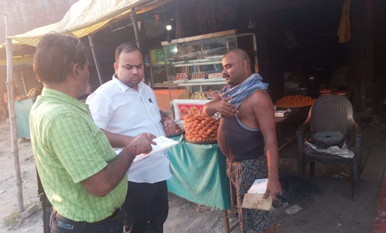 कोतवाली क्षेत्र सहायक खाद्य आयुक्त द्वितीय सुरेश कुमार मिश्रा अपनी टीम के साथ आजमगढ़ मीटिंग से वापस शुक्रवार संध्या मऊ जाते समय मोहम्मदाबाद गोहना शाहिद चौराहे के पास तीन मिठाई की दुकान को देखते ही वहीं रुक गए देखा कि तीनों दुकानों पर मिठाइयां खुले रूप में रखी हुई है काउंटर से बाहर पड़ी थी तथा गंदगी व्याप्त थी जिसको देखते ही उन्होंने तीनों दुकानदारों को नोटिस देते हुए अंतिम चेतावनी दिया कि अगर दोबारा गंदगी तथा खुले में मिठाई रखी हुई पाई गई तो कठोर कार्रवाई की जाएगी जांच के दौरान खाद्य सुरक्षा अधिकारी अमित कुमार राणा विजय प्रकाश श्रीमती रीता समेत खाद्य विभाग के अन्य लोग भी जांच के दौरान मौजूद रहे।