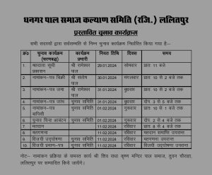 पाल समाज ललितपुर का चुनाव कार्यक्रम घोषित