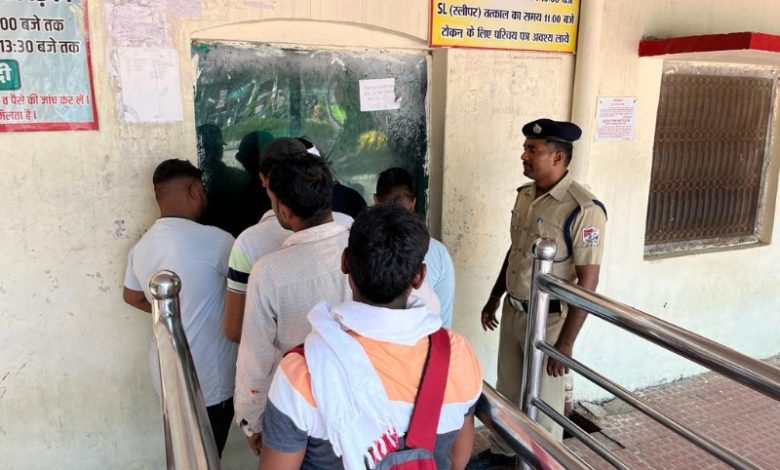 रेल्वे स्टेशन पर सीआरपीएफ पुलिस के जबान ने तत्काल टिकिट के लिए यात्रीयों की लाइन को समय पर दिलवाई टिकिट,