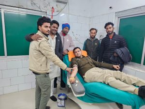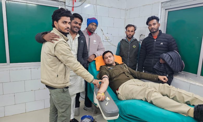 जय अम्बे रक्तदान समिति ललितपुर (रजि.) की ओर से सिपाही मोहम्मद जीशान उत्तर प्रदेश पुलिस ने किया सिविल लाइन सदनशाह निवासी बुजुर्ग व्यक्ति को पहली बार रक्तदान।