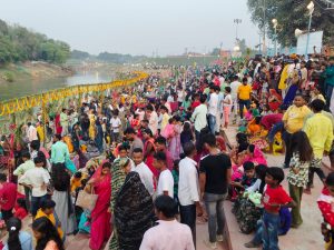 सूर्य उपासना के महापर्व डाला छठ के मौके पर तमसा नदी के पावन तट पर बिना अन्य जल ग्रहण किया महिलाएं 16 श्रृंगार करके विभिन्न पकवानों को लेकर नदी पर पहुंची तथा सूर्य के अस्त होने पर उन्हें जल देकर अपने परिवार की सुख समृद्धि तथा पुत्र की दीर्घायु होने की कामना के प्रति उनसे आशीष मांगा बताते चले की शुक्रवार को प्रातः सूर्य उदय के पश्चात यह महिलाएं पुनः नदी पर जाएगी और उन्हें जल देकर आशीर्वाद प्राप्त कर वापस अपने घर को आएंगे तब यह सूर्य उपासना का महापर्व समाप्त होगा जिसको लेकर हजारों की भीड़ तमसा नदी के तट पर जमी रही इस मौके पर तमसा नदी पर भगवान सूर्य की प्रतिमा भी स्थापित की गई जहां समिति के लोगों ने तथा हजारों की भीड़ में आई महिलाओं ने भगवान सूर्य की उपासना कर उनसे वरदान भी मांगा इस मौके पर नगर पंचायत मोहम्मदाबाद गोहाना के अध्यक्ष श्रीमती इंदु देवी अधिशासी अधिकारी देवेश कुमार मिश्रा प्रतिनिधि दीपक गुप्ता डायमंड अजीत जायसवाल गुंजन श्रीवास्तव राजकुमार गुप्ता महेंद्र चौहान सुमंत यादव समेत पुलिस उपाधीक्षक डॉक्टर अजय विक्रम सिंह कोतवाल रविंद्र नाथ राय चौकी की प्रभारी लाल साहब गौतम एवं महिला पुलिस महिला उप निरीक्षक कांस्टेबल इस मेले को कुशलपूर्वक संपन्न कराने हेतु पूरी तरह से अपने स्थान पर मुस्तैद रहे।