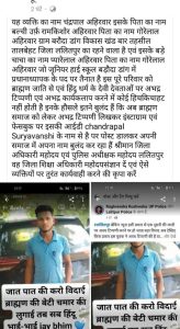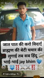 सोसल मीडिया पर इंस्टाग्राम के माध्यम से पोस्ट की गई है जिसका यूजर चंद्रपाल सूर्यवंसी (Chanadra Pal sooryavnshi) लिखता है कि जात पांत की करो विदाई ब्राम्हण की बेटी चमार की लुगाई, तब सब हिन्दू भाई भाई, बाद jay bheem भी लिखा हुआ है,