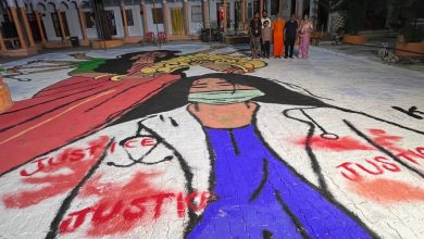 उदासीन ऋषि आश्रम संगत नर्स के साथ अमानवीय घटना को लेकर रंगोली बनाकर सबको जागरूक किया