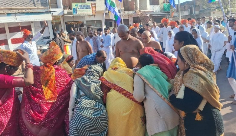 मुनि विनम्र सागर महाराज के ससंघ आगमन पर श्रद्धालुओं ने भारी उत्साह से कराया नगर प्रवेश, धर्माबलंबियों ने अगुवानी के लिये दुल्हन जैसी सजायी नगरी, तोरण द्वार सजाकर बनायी रंगोली ऐतिहासिक पंचकल्याणक कार्यक्रम का हुआ भव्य आगाज,
