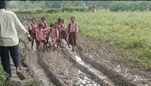 देश जहां एक तरफ भारत अपना कदम चांद पर रख चुका है वही उसी भारत देश के बच्चे जिनको देश का भविष्य माना गया है वही बच्चे आज भी देश को इतनी तरक्की करने के बाद भी कीचड़ से भरे हुए रास्ते से गुजर कर स्कूल जाते है बच्चों को स्कूल तक पहुंचने में कीचड़ से भरे हुए रास्ते से गिरते सभलते हुए विद्यालय तक पहुंचना पड़ता है आज तक इन बच्चों को जो कि देश का भविष्य कहलाते है उनको विद्यालय जाने के लिए जिम्मेदारों ने आज भी सड़क नहीं डलवा पाई। ग्रामीणों के लाख प्रयासों के बाद भी आज तक यहां पर पक्की सड़क नही बन पाई है और आज भी बच्चों को कीचड़ भरे कच्चे रास्ते से विवश होकर स्कूल पढ़ने जा रहा है। आखिर क्यों नही हो पा रहा इस गांव का विकास? आखिर किस की मनमानियों से इस गांव में अब तक पक्की सड़कें तक नहीं बनवाई गई ?किन कारणों से आज तक सरकार की नजर यहां तक नहीं पहुंच रही है?
